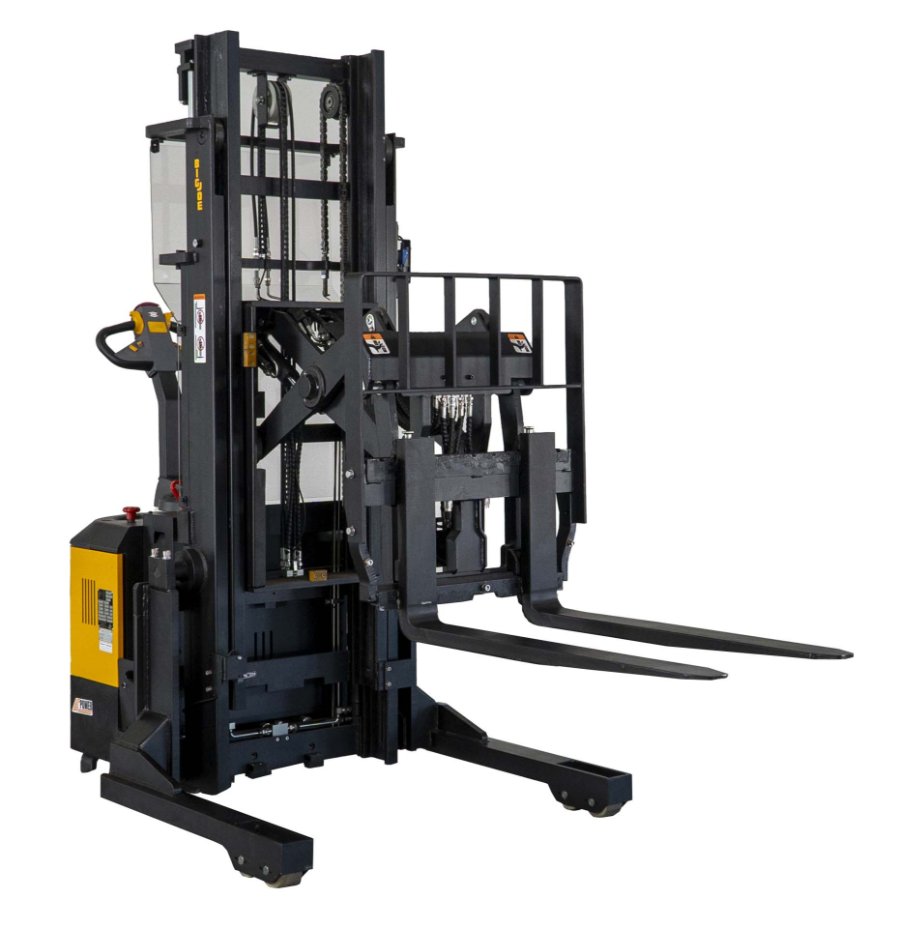 The PDSR combines the tight turning characteristics and low operating cost of a walkie straddle stacker with the flexibility of a counterbalanced truck through the use of a pantograph. This mechanism extends the loads being handled beyond the straddle legs to lift or lower products and can be retracted for compact turns. With the addition of power steering, sideshift, proportional hydraulics, and tilt, the PDSR delivers exceptional versatility and easy intuitive control.