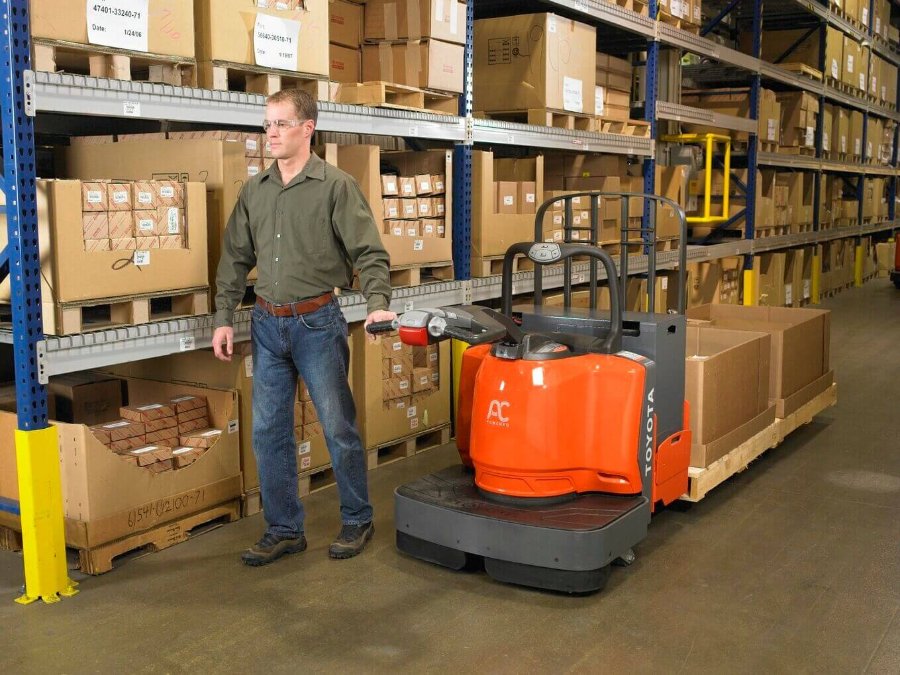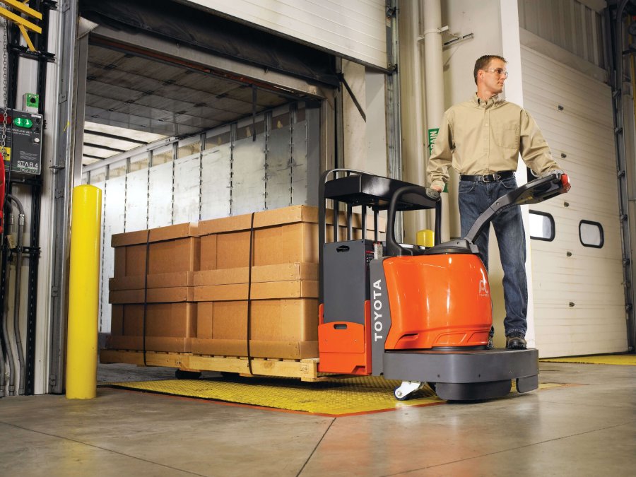 The Toyota End-Controlled Rider Pallet Jack is responsive and easy to maneuver. The End-Controlled Rider, ideal for longer runs, helps you move products efficiently throughout your warehouse. Doubling as a ground-level order picker, the End-Controlled Rider Pallet Jack is an asset to any warehouse or distribution center.