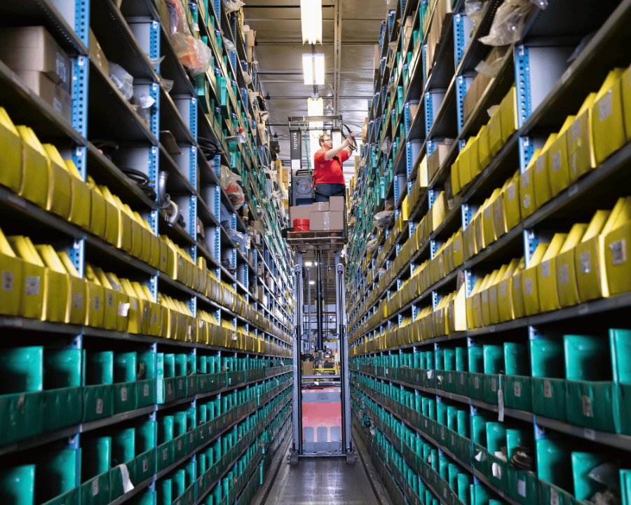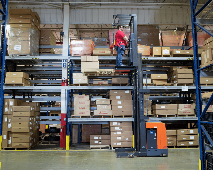 The Toyota Order Picker solves even the most challenging high-reaching warehouse needs. With lift heights up to 390 inches and cushioned mast staging, operators can comfortably reach your tallest racks for order picking. The Toyota Order Picker easily maneuvers narrow aisles in warehouses during case picking, thanks to optional wire guidance and double rail guidance systems. You’ll also drive to optimal efficiency with optional Lift Logic technology that continuously monitors lift height, allowing for optimized travel speed at various heights while still maintaining safe operation.