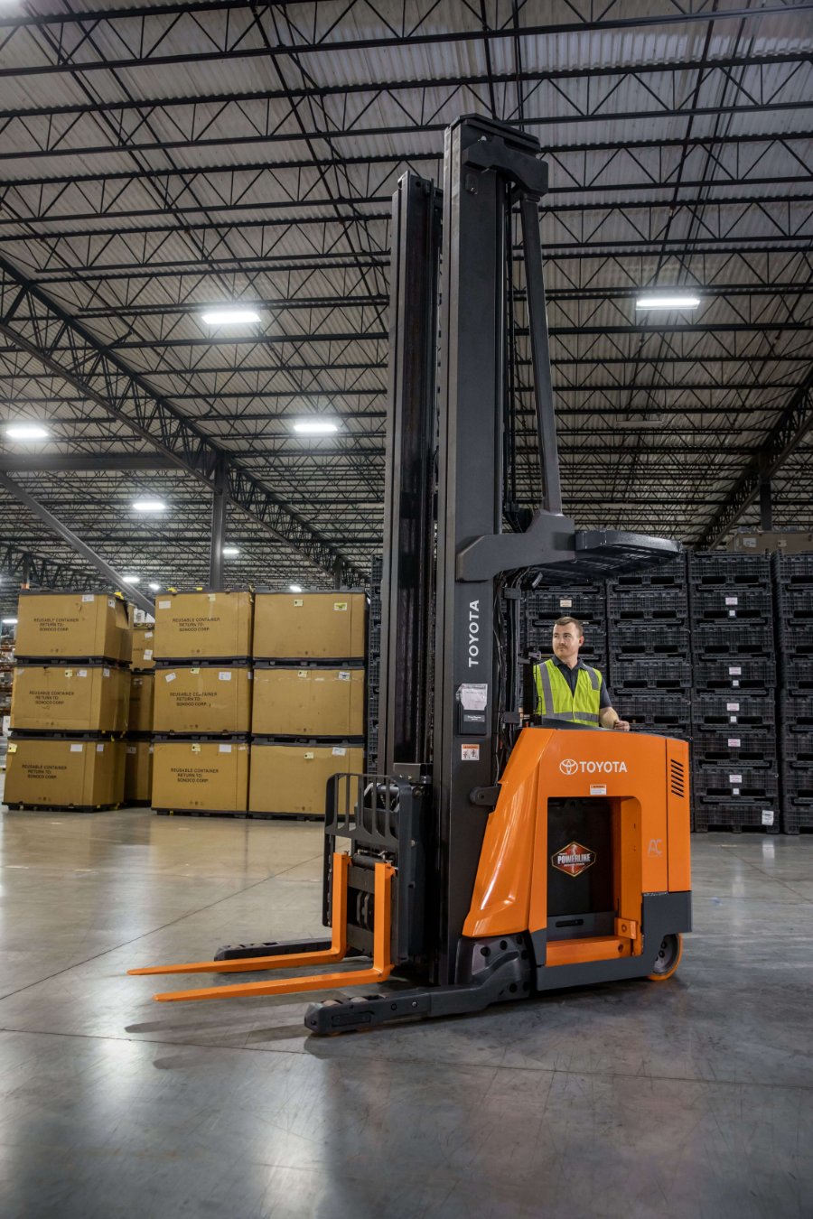 Your fast-paced warehouse environment gets a workout day-in and day-out. When it comes to moving and storing products, the last thing you need is limitations. Keeping up with evolving throughput and storage density demands while managing fluctuating SKU counts presents challenges for warehouse managers and operators. Toyota’s High-Capacity Reach Truck enables you to reach higher, work smarter, and be comfortably productive regardless of the assignment. For tall tasks and heavy orders, you need the Toyota High-Capacity Reach Truck.